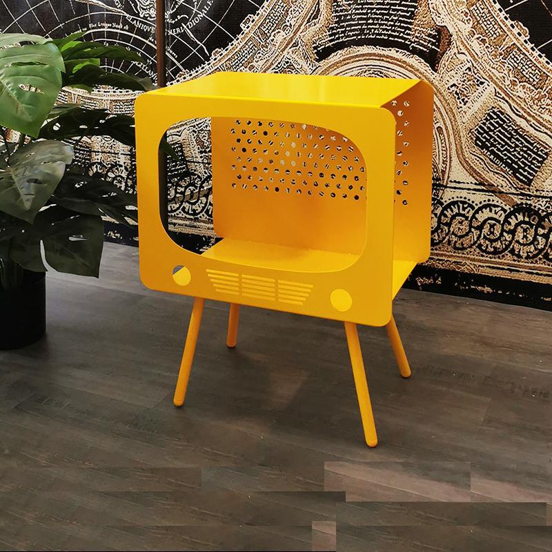 La table d’appoint basse style industrielle en métal captive immédiatement le regard avec son design original en forme de téléviseur. Cette pièce unique ajoute un charme industriel à n’importe quelle pièce, en reflétant un amour pour le rétro fusionné avec la modernité.