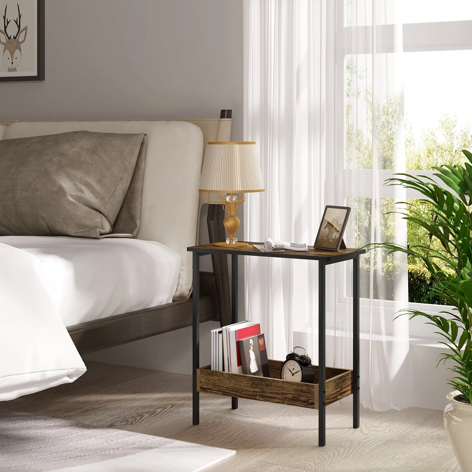 L’espace est utilisé de manière optimale avec cette table d’appoint. Ses deux étagères distinctes, dont l’une est dotée de bords surélevés, fournissent un rangement astucieux pour divers objets. Qu’il s’agisse d’entreposer des livres, des plantes d’intérieur ou des objets décoratifs, chaque étagère a été conçue pour répondre à vos besoins tout en mettant en valeur vos biens. La présence de bords surélevés sur l’étagère inférieure assure également une sécurité supplémentaire contre les chutes éventuelles.