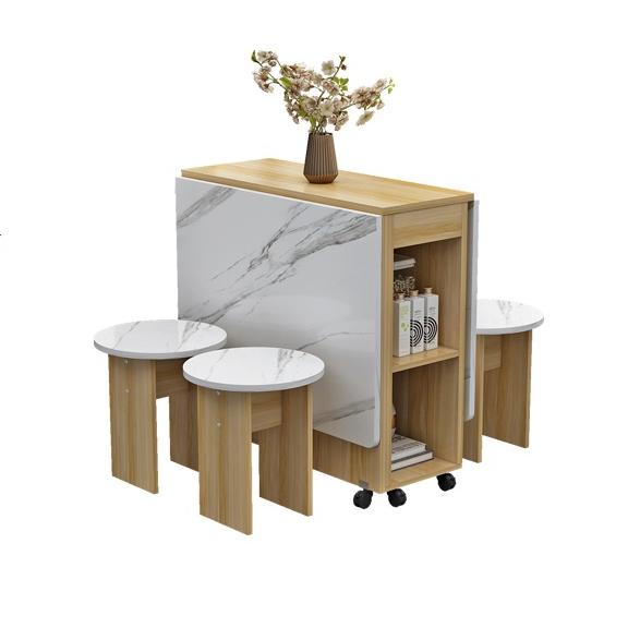 La table d’appoint cuisine mobile multifonctionnelle pliante avec tabourets allie praticité, design moderne et durabilité afin de répondre aux besoins des amateurs de cuisine astucieux en termes d’aménagement intérieur.