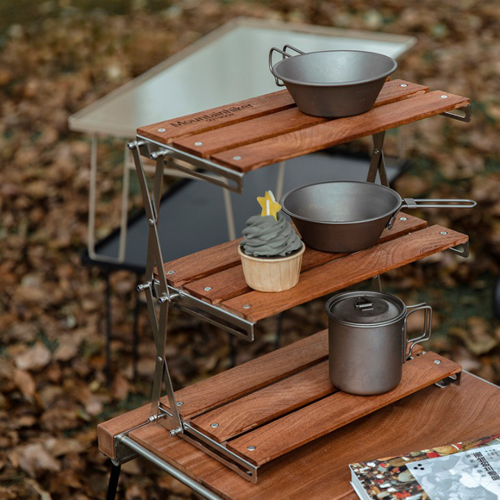 Les plateaux en bois apportent une touche rustique. Pliable et portable, elle se glisse dans votre sac pour vos aventures en plein air. Avec ses trois niveaux, elle offre assez d’espace pour les plats, les boissons et les jeux, créant ainsi des moments de convivialité au cœur de la nature.