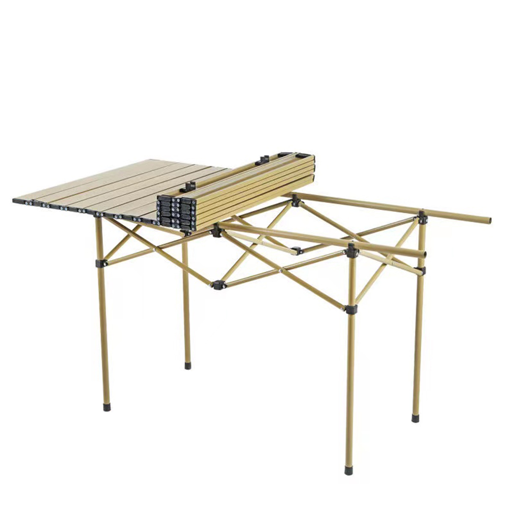 Avec une couleur dorée éclatante qui respire l’élégance, elle apporte une touche d’esthétisme et d’opulence à chaque escapade en plein air. Sa teinte dorée, qui capte et reflète la lumière, créera une ambiance chaleureuse et accueillante dans votre campement. Équipée de quatre pieds, cette table offre une stabilité optimale, même sur les surfaces inégales que l’on peut souvent rencontrer en camping.