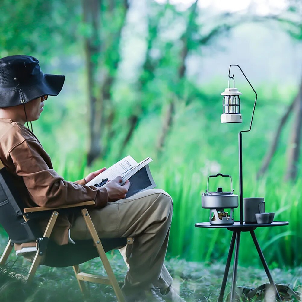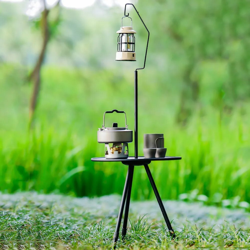 Ce qui distingue véritablement cette table d’appoint, au-delà de sa robustesse, c’est sa capacité à s’adapter à diverses situations. Les trois pieds réglables permettent une stabilité parfaite, même sur des terrains inégaux. La perche intégrée pour accrocher une lanterne ajoute une dimension supplémentaire à son utilité, vous assurant une source de lumière constante lors de vos soirées en plein air. Imaginez les dîners à la belle étoile, éclairés par une douce lumière suspendue juste au-dessus de votre table.