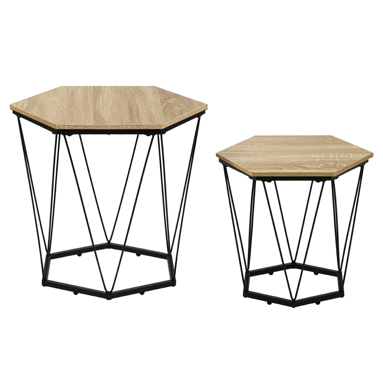 Ces tables d’appoint offrent une grande flexibilité d’utilisation. Ensemble ou séparées, elles répondent à une multitude de besoins : qu’elles soien utilisées comme table basse dans le salon, table d’appoint près du canapé, table de chevet dans la chambre ou même comme petite table sur un balcon. Leur forme hexagonale, à la fois esthétique et pratique, s’adapte aisément à différents agencements et styles de décoration.
