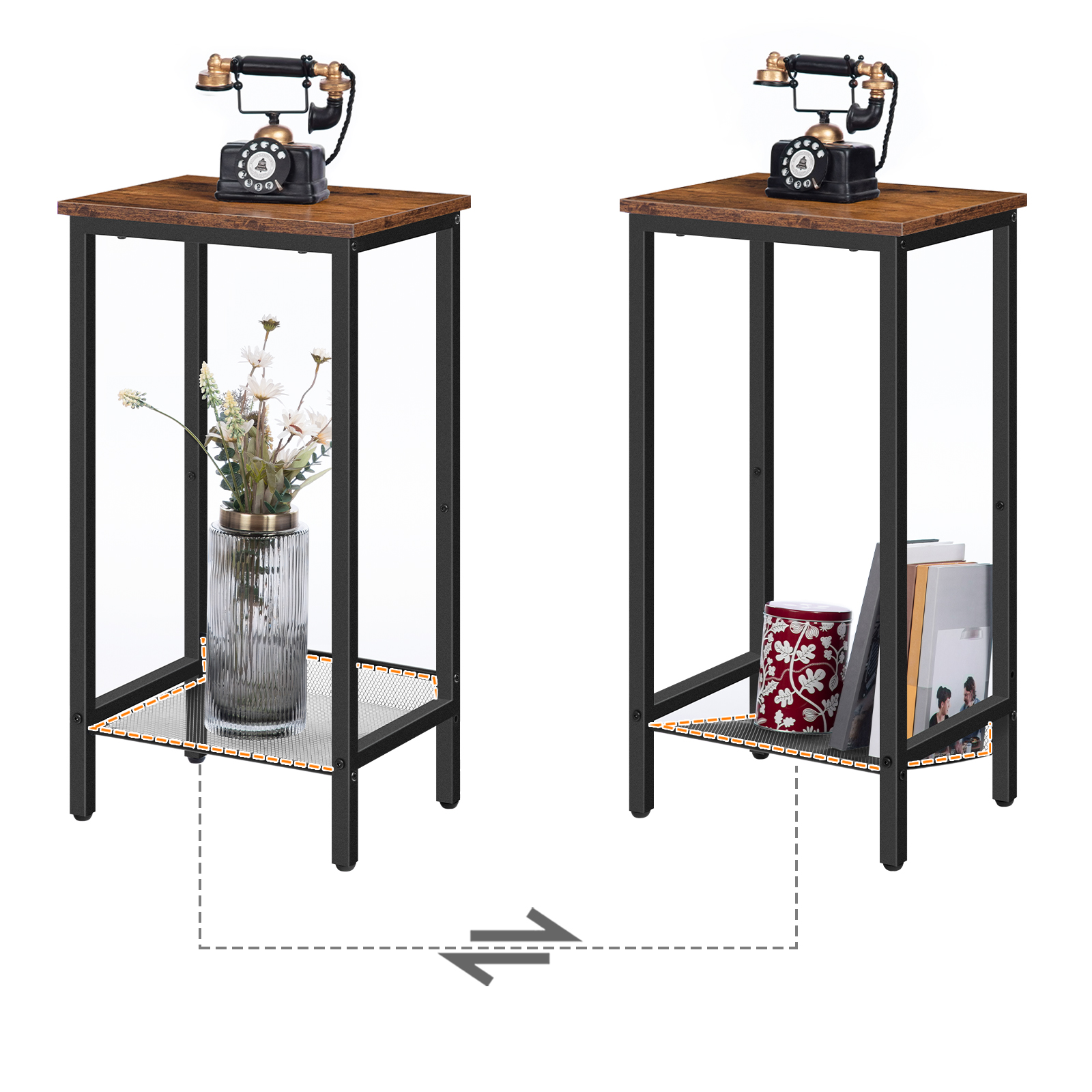 Le point fort de cette table d’appoint réside dans son plateau en maille réglable, offrant ainsi une étagère pratique et modulable. Vous pouvez ajuster la hauteur de la maille métallique selon vos besoins, ce qui vous permet de disposer d’un espace de rangement personnalisé.