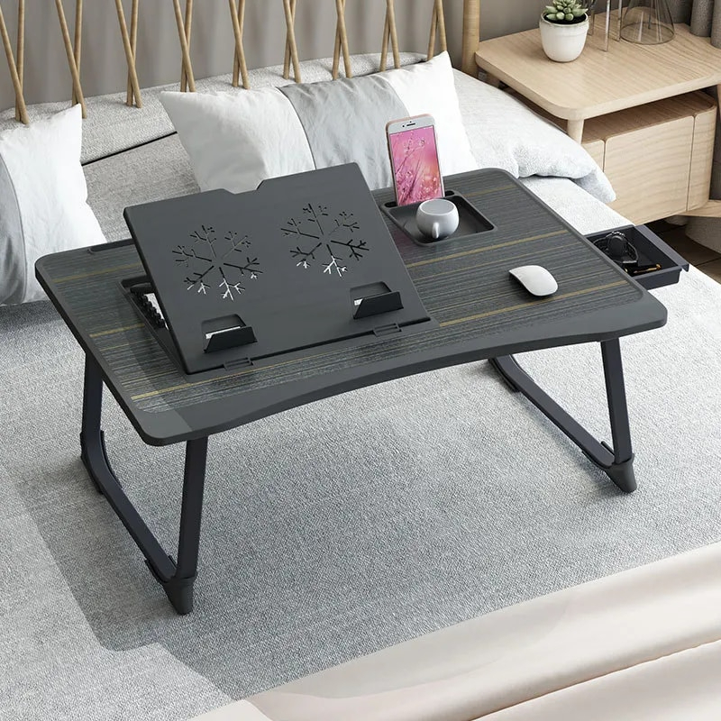 Avec sa structure en plastique noir et son allure moderne, cette table d’appoint pour ordinateur est un véritable atout. Sa capacité à se plier et son réglage en hauteur permettent une grande adaptabilité, faisant d’elle l’option idéale pour ceux qui cherchent l’efficacité sans compromettre le style.